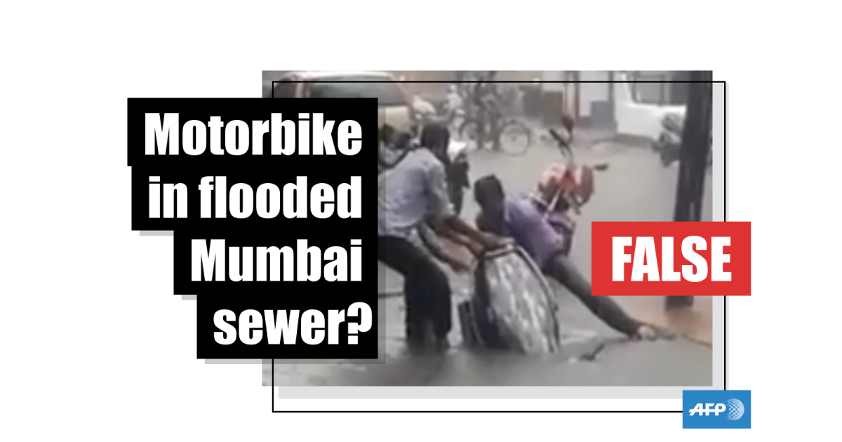 This video of a motorbike in a flooded sewer was filmed in Maharashtra state, not Mumbai