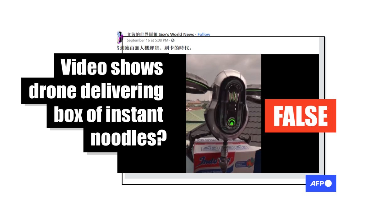 It purports to show a drone delivering a box of Indomie instant noodles before collecting a card payment.