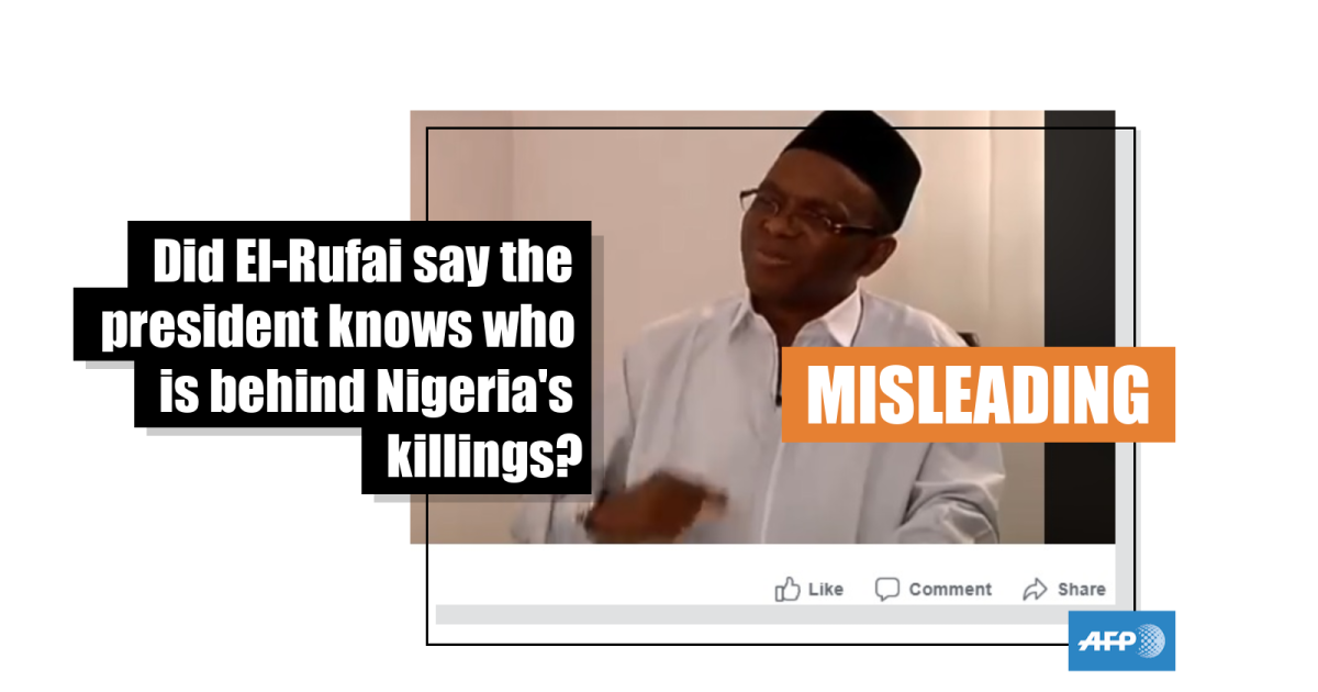 Taken out of context and re-captioned, it would be easy to infer that el-Rufai is talking in the video about Buhari and the recent rise in violence in Zamfara state.