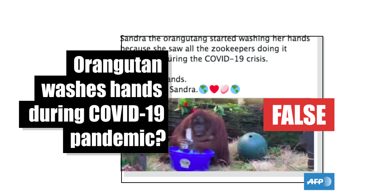 The caption of the 16-second clip states: “Sandra the orangutang started washing her hands because she saw all the zookeepers doing it repeatedly during the COVID-19 crisis.”