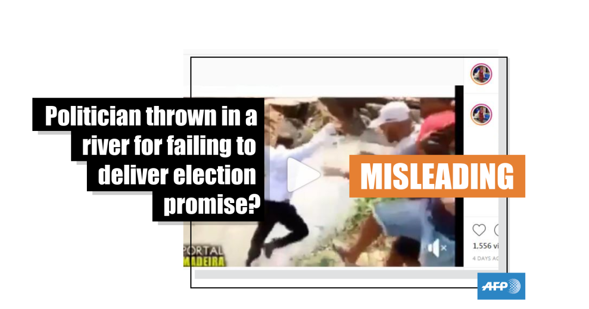 AFP Fact-Check’s Brazil team watched the video and explained to us that the man in the light-coloured shirt is seen introducing himself as a candidate for local elections and promising improvements to the area, including ending the open-air sewage system. Around four minutes in, text appears reading: “The councillor has been elected, and has not kept his promises. He returned four years later.”