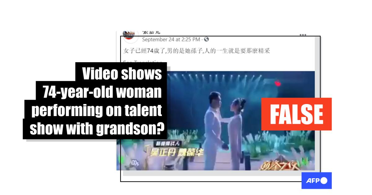 The post’s simplified Chinese-language caption translates to English as: “The woman has been 74 years old, and the man is her grandson. Life ought to be that wonderful”.
