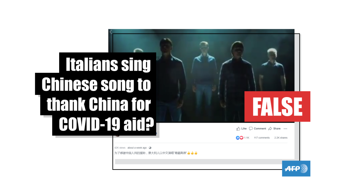 The post’s simplified Chinese caption translates into English as: “To express thanks to Chinese people for their help, Italians sang ‘Qinghai-Tibet Plateau’ in Chinese language”.