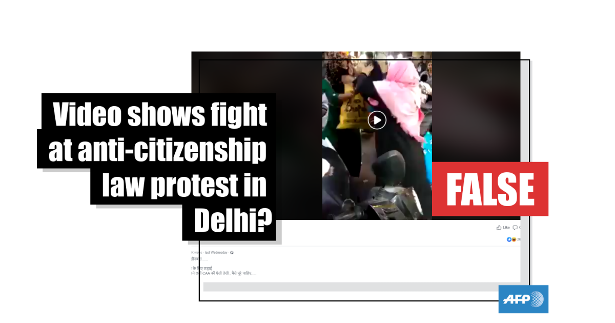 This claim is false; the video has circulated since at least January 2019, almost a year before India passed the citizenship law, in media reports about an altercation between a group of women at a market in Bhopal, a city in the Indian state of Madhya Pradesh.