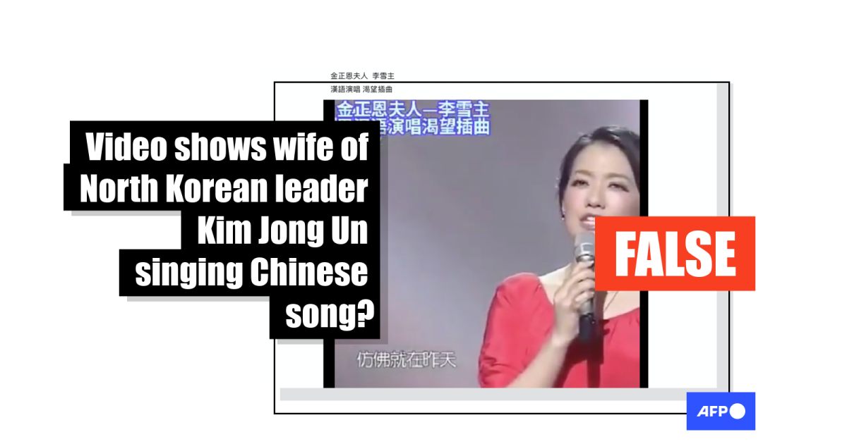 The post’s traditional-Chinese caption and the simplified-Chinese text overlay in the video translate to English as: “Kim Jong Un’s wife, Ri Sol Ju, is singing a Chinese song, ‘Desire’”.