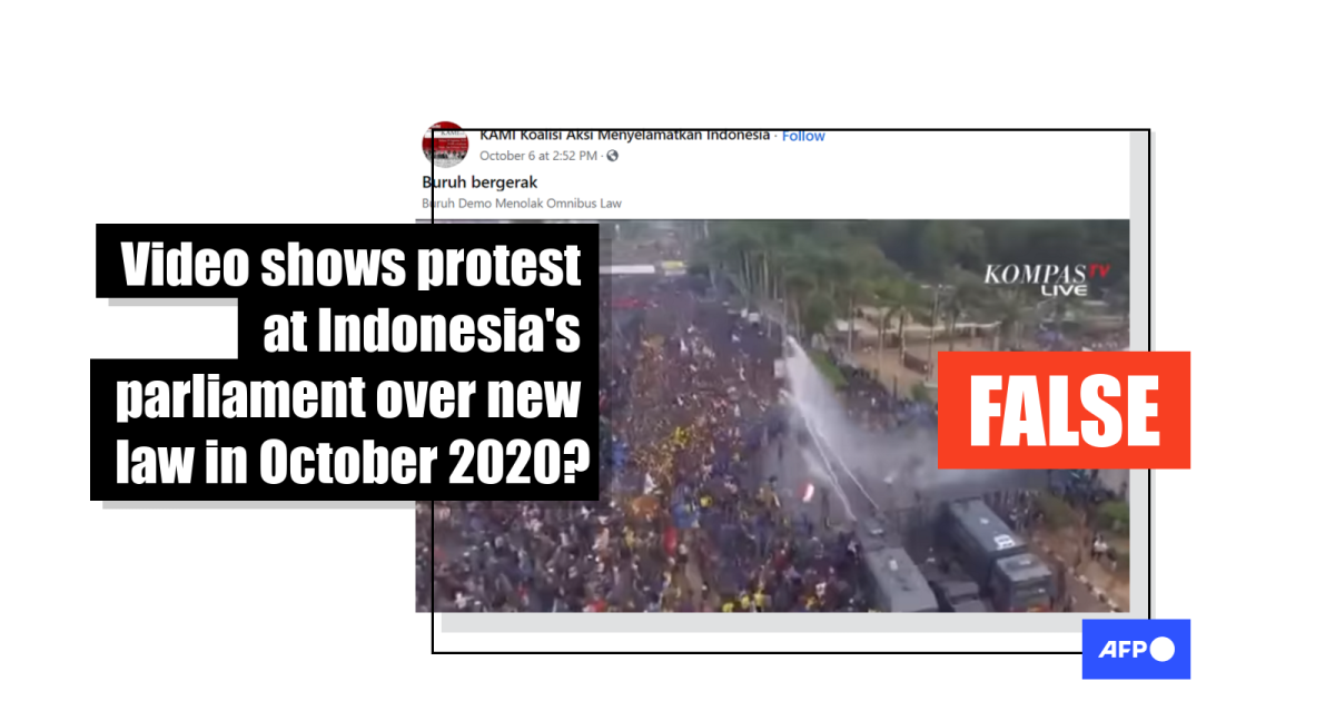 Translated from Indonesian-language to English, the video’s title translates as: “LATEST - Heated, Police Release Water Cannon to Demonstrators in Front of Indonesia's Parliament Building.”