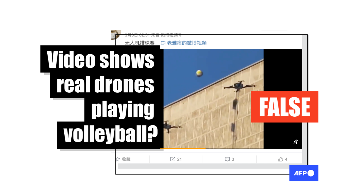 It purports to show two drones hitting a ball back-and-forth.