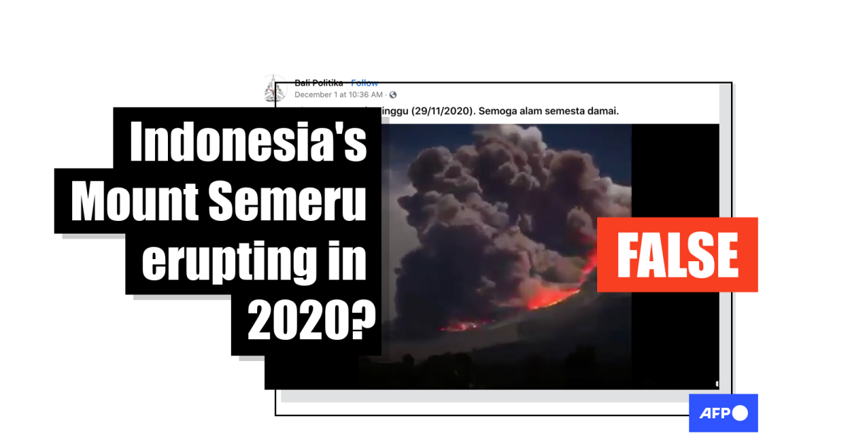 The Indonesian-language post translates to English as: “Mount Semeru erupted on Sunday (11/29/2020). May the universe be peaceful.”