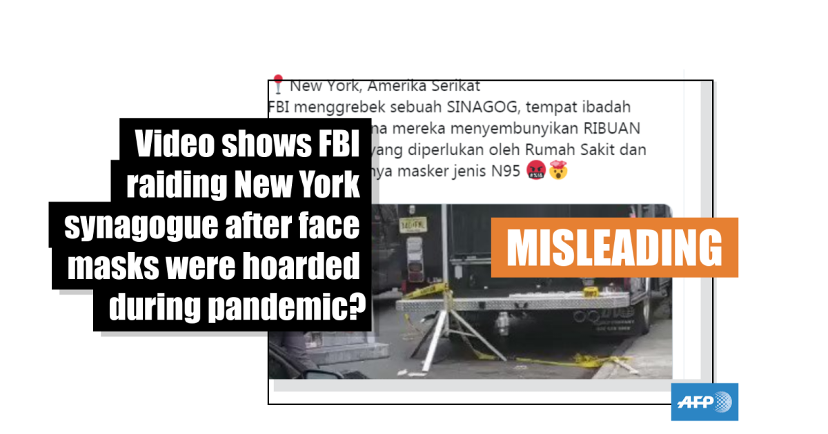 The video's caption reads in part: “FBI raids apartment that hoarded N95 mask