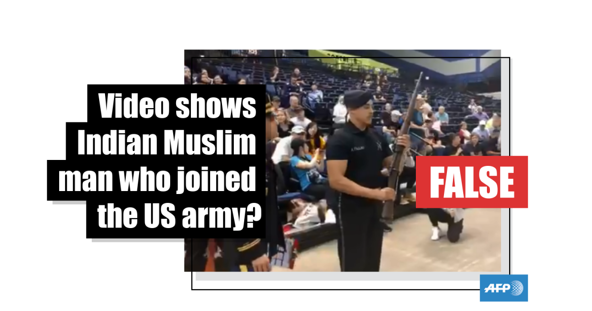 The claim is false. The man seen in the video is Alejandro Paulino, a Hispanic American competing in a drill competition in May 2019. Paulino says he is not of Indian descent and he is not in the military either.