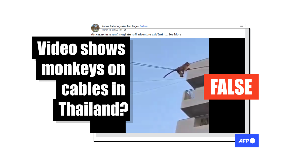 The article, headlined “Daredevil Monkey Uses Electric Wire to Descend From High-Rise Roof”, claims the footage was taken in India.