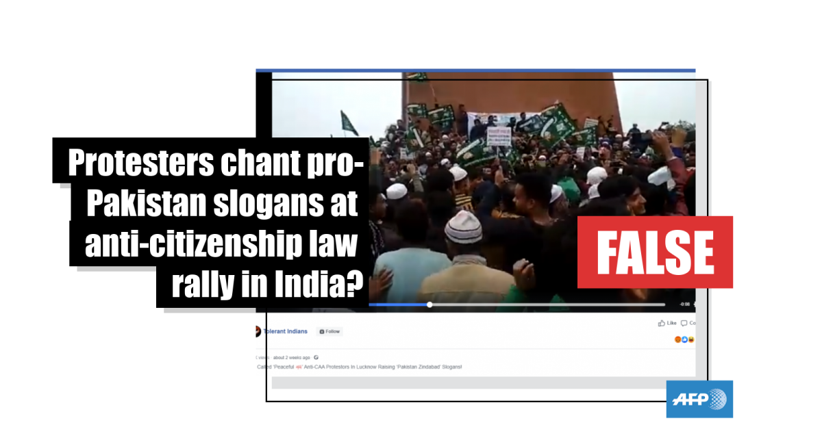 The claim is false; the video shows protesters chanting pro-India slogans at an anti-citizenship law protest.
