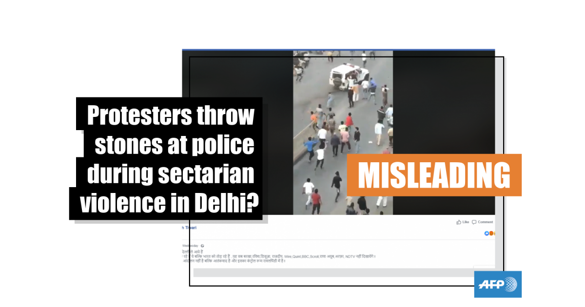 The video’s caption states: “Anti-CAA protest in Shah-e-Alam area, Protesters pelted stones on Police van.”