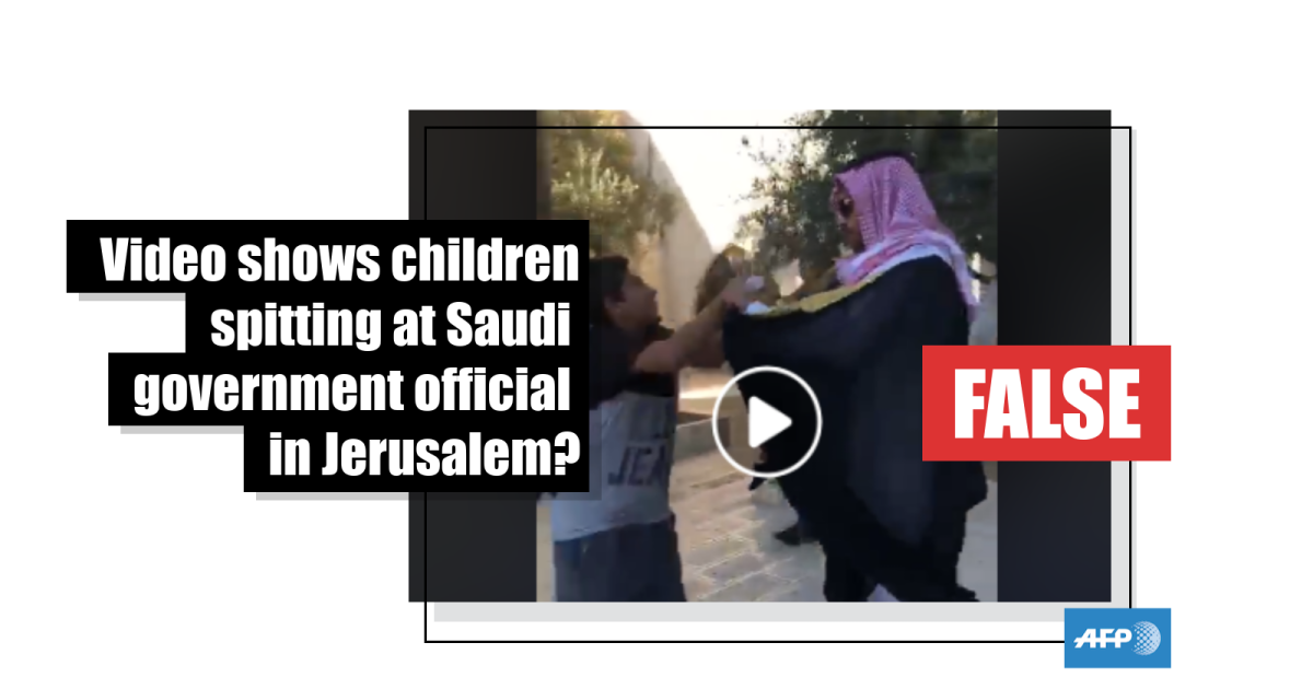 The one-minute 24-second video shows a man in traditional Arab clothing walking in the Al-Aqsa mosque complex in Jerusalem as men and some young children spit at him and shout curses.