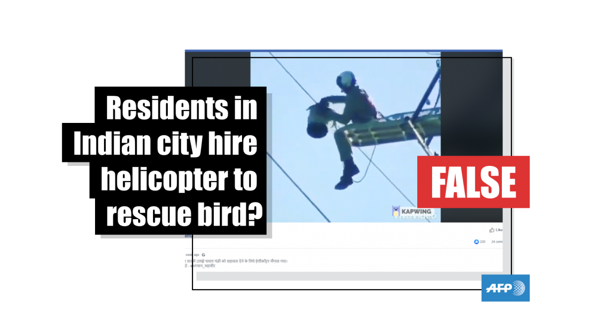 A longer version of the video has also circulated on social media in Pakistan in January 2020, alongside a claim that it shows a member of the Pakistani Army rescuing a bird from a power line. AFP debunked the false claim here.