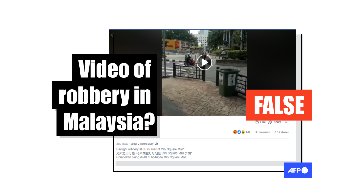 The report reads in part: “In the video, a Malay woman was robbed by motorcycle riders on Jalan Wong Ah Fook in Johor Bahru. There are two motorcycle riders – one went off the motorcycle and snatched [her belonging], and the other sat on the motorcycle for support.
