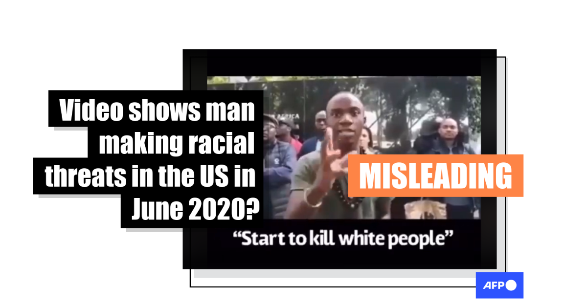 The report is entitled “‘Start by killing white people’: Has the LDNA called for racial crime in South Africa?”. It states the speech in the video in the misleading post was recorded during a demonstration in front of the South African Embassy in Paris on September 6.