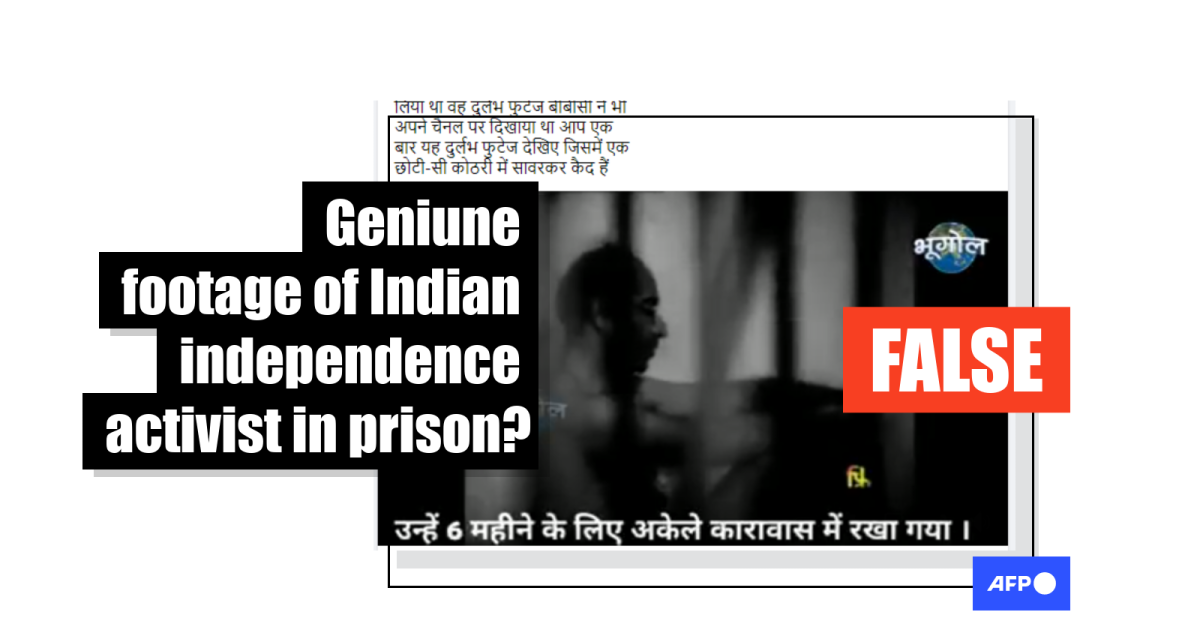 The post’s Hindi-language caption translates to English as: “A British journalist shot this video of Savarkar inside the Andaman prison. The BBC aired this rare footage on its channel. You too watch this rare footage that shows Savarkar is imprisoned in a small room.”