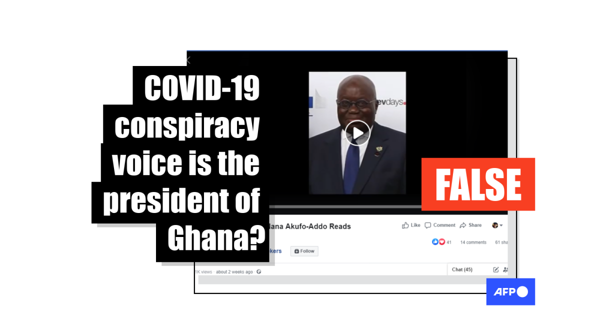 A WhatsApp message forwarded to AFP Fact Check reads: “Unbelievable but true. Ghanaian President came across this secret documents (sic) about COVID-19 and decides to release it to his people out of patriotism. Please carefully listen to it and share widely to expose this evil. Forwarded as received.”