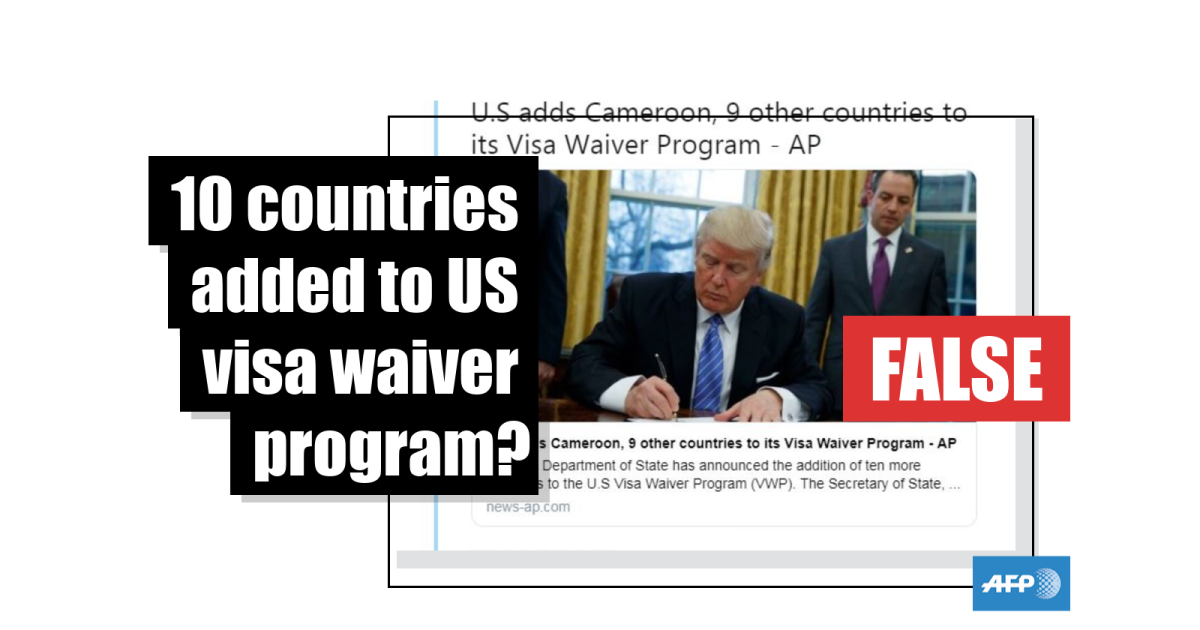 A website is spreading a false claim that the US has added 10 countries to its visa waiver program