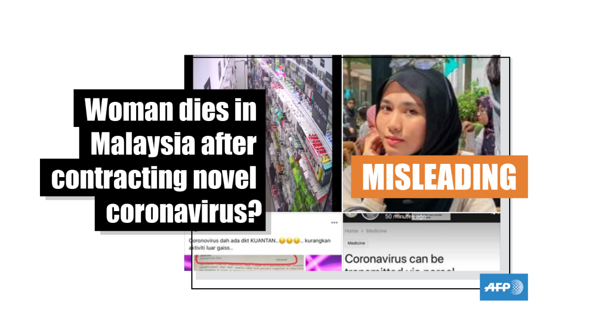 The woman's father Norazlan Mokhri told AFP by Facebook Messenger that she did not die due to the novel coronavirus and that the cause of her death remained “unknown”.